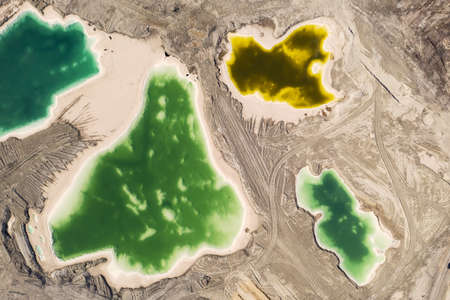 Industrial mine, abstract sendimentation tank of copper mine , turquoise water like river delta. Huge sewage treatment tank in Polkowice Poland