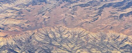Colorado Rocky Mountains Aerial panoramic views from airplane of abstract Landscapes, peaks, canyons and rural cities in southwest Colorado and Utah. United States of America. USA.