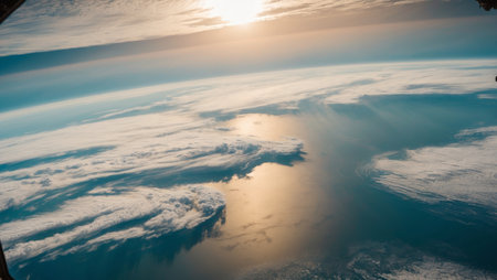 AI Generated. View of Earth from the International Space Station showcasing clouds and ocean under the sunlight during midday