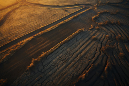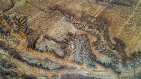 Drought Top View. Aerial view of a cracks in the ground. texture. Desert landscape.