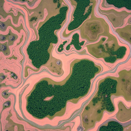 Generative AI : Abstract aerial view of tailings ponds for mining in Western Australia