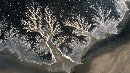 aerial view concept capturing the symmetrical patterns of coastal areas, with beaches, waves, and waterfronts