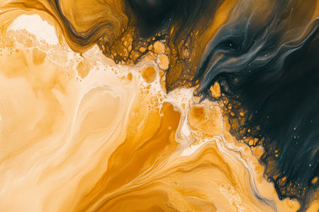 Diffuse liquid gold on black. Golden wave and bubbles. Abstract liquid marble background or texture. Acrylic Fluid Art
