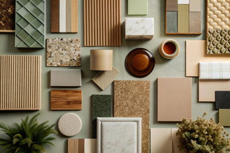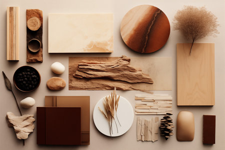 Explore a visually engaging collection of various materials and textures arranged thoughtfully, perfect for use in creative projects and interior design concepts.