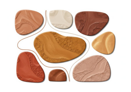Abstract arrangement of colorful paint swatches on a white background showcasing various shades of nude and brown tones