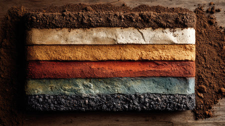 AI Generated. soil profile represents layers of history and change that are stored in earth illustrating connection between time and memory
