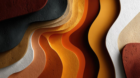 This abstract image features dynamic layers of wavy textures in warm earth tones, creating an artistic and modern background. Perfect for design projects.