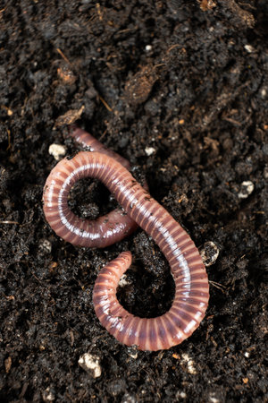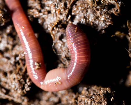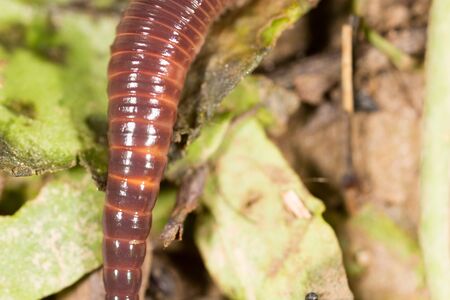Top view of earthworm Eisenia fetida macro vertical shooting.