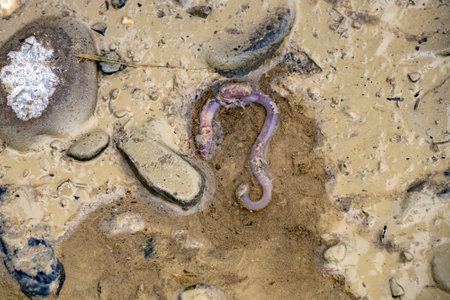 Closeup of a leech on soil with earthworms wet environment nature concept macro view
