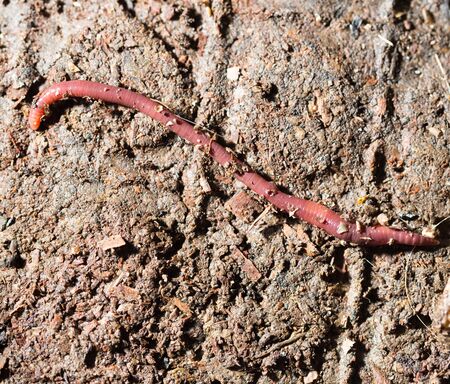 Earthworm moving on the fertile soil. Dendrobaena is a burrowing annelid worm that lives in the soil, if many in the soils, that soil are rich in organic matter. Earthworms as bait for fishing.