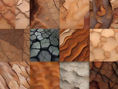 A collection of textured surface layers in warm earthy colors showcasing various patterns ideal for creative projects, interior design, and artistic inspiration.