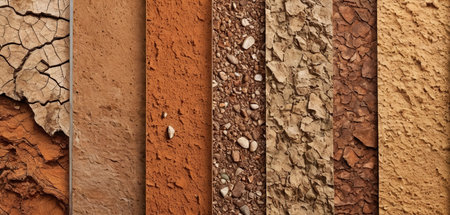 This image showcases distinct layers of soil in a variety of colors and textures, representing the vital components of fertile ground for gardening and agriculture.