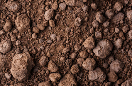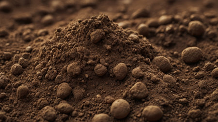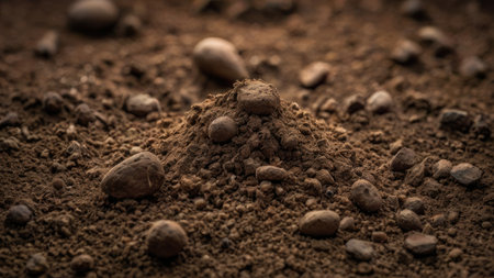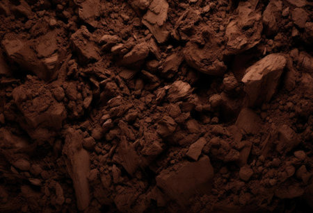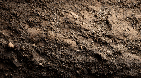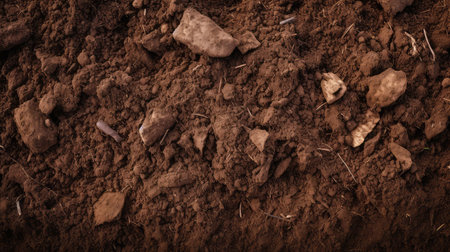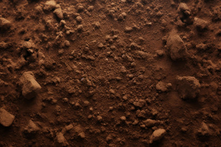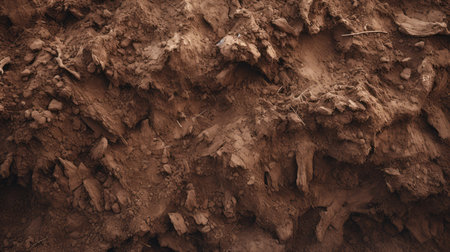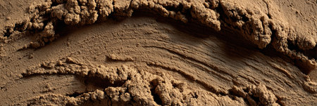 Close-up of rich brown earth showing fine textures and layers in natural light, highlighting natures beauty.