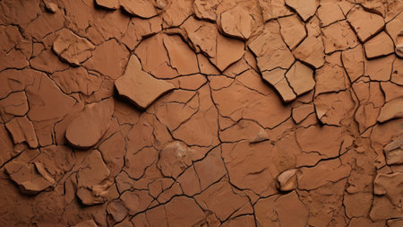 A brown textured surface with a rugged, cracked mud texture, creating an organic, arid landscape appearance.