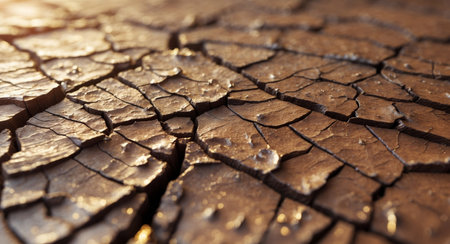 Abstract close-up of dry, cracked clay terrain with strong directional lighting
