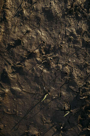 Close up dry soil in dark brown background.
