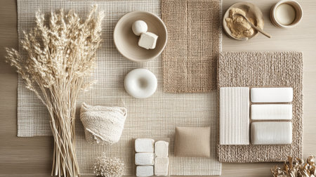 A beautiful arrangement of various natural textures and materials showcasing neutral tones, perfect for creative design, art projects, and inspiration.