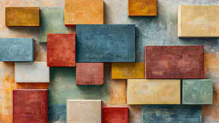 This vibrant geometric abstract background features an array of rectangles and squares in bold colors, perfect for creative projects, design inspiration, or modern decor.