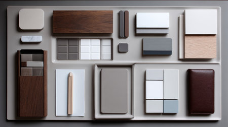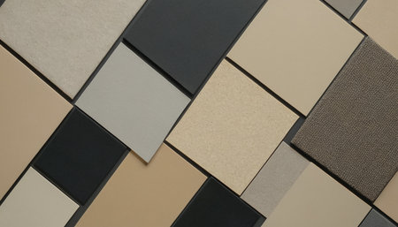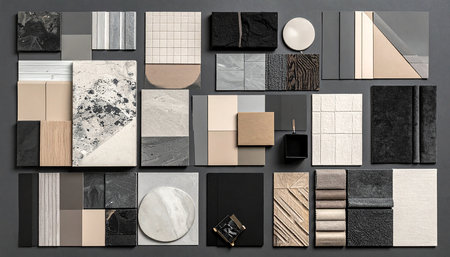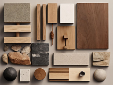 interior design moodboard - material collage, trend inspiration, natural materials, warm color tones - AI generated image