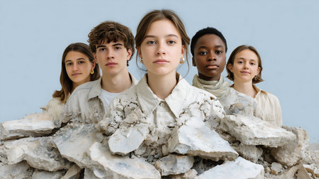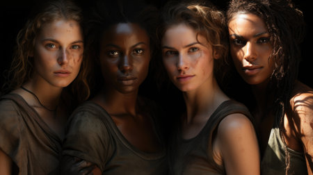 Group of diverse women and men posing in studio. Beauty, fashion, Generative AI