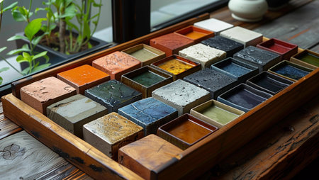 Explore a visually engaging collection of various materials and textures arranged thoughtfully, perfect for use in creative projects and interior design concepts.