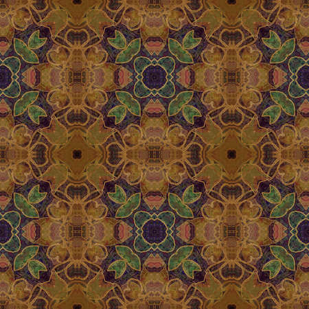 Brown Ethnic pattern. Abstract kaleidoscope fabric design.