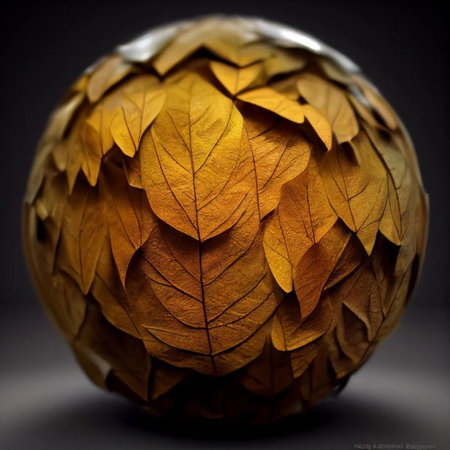 Autumn leaves in the shape of a ball on a dark background