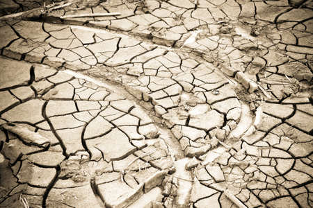 the ground cracked by drought in winter
