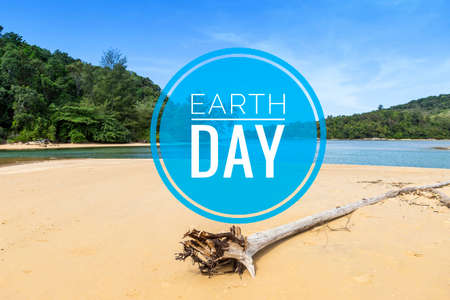 Earth day logo on beach background, nature and environment concept