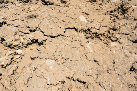 Dried desert land. Cracks in the ground. Dehydrated soil. Deep cracks and drought.