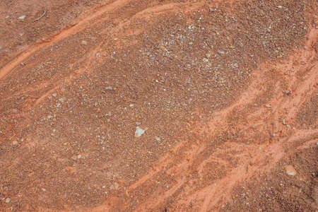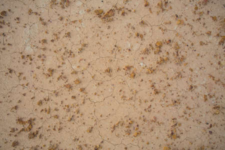 Close-up of ground with dirt and sand soil in random with small stones. Randomly sketched dirty loose coarse sand interspersed with debris and small gravel