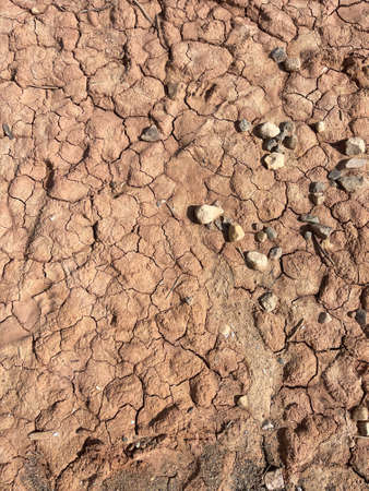 Carving from natural dry clay soil. Flat surface texture of natural dried and cracked red clay.