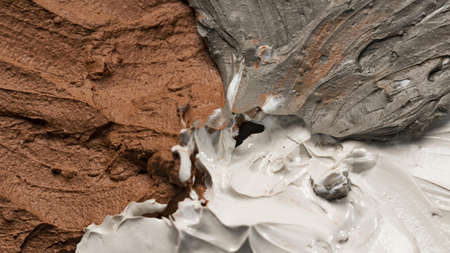 Fluid Art acrylic paints. Abstract mixing waves and grains of sand. Liquid flows splashes. Marble effect background or texture