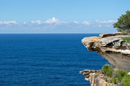 Landscape nature of cliff with ocean at Royal national park coastal walk in Sydney NSW Australia - Nature travel track from Wattamolla. Travel outdoor and Picnic Activity