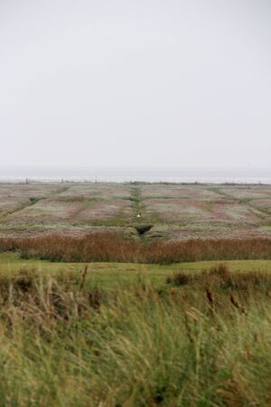 Lomma beach meadows, Malmo, southern Sweden. Blue sky and ocean in the background