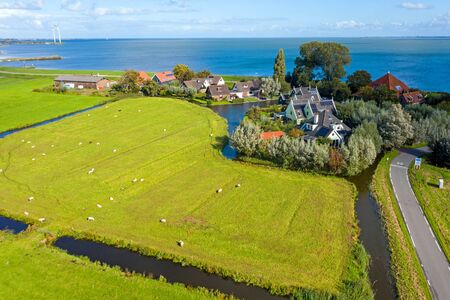 Aerial from the traditional village Uitdam at the IJsselmeer in the Netherlands