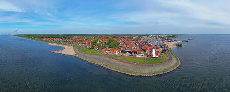Aerial from the traditional village Hindeloopen at the IJsselmeer in the Netherlands