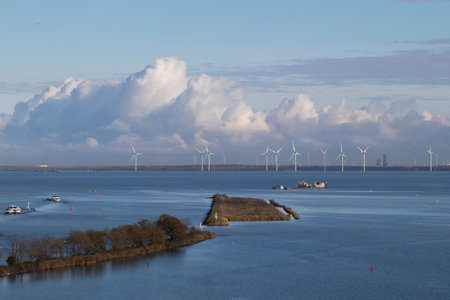 Muiden , Holland - 14 April 2018 Forteiland Pampus or Fort Pampus Island, artificial island in the IJmeer, Province of North-Holland, Netherlands