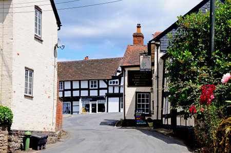 View along High Street with Ye Olde Salutation Inn on the right hand side, Weobley, Herefordshire, England, UK, Western Europe.
