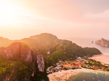 Sunset around Phi Phi island. Thailand. Aerial photography