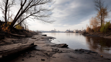 Contaminated water and reservoirs in forests, pollution of surface waters as a result of human activity with chemicals. Industrial chemical pollution. Environmental pollution. Ecological disaster.