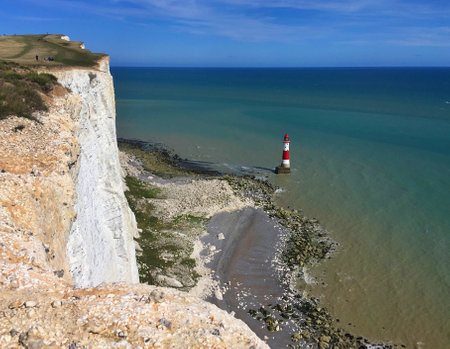Beachy head, walk to the lighthouse near Eastbourne, England, Seven Sisters National Park, UK, selective focus
