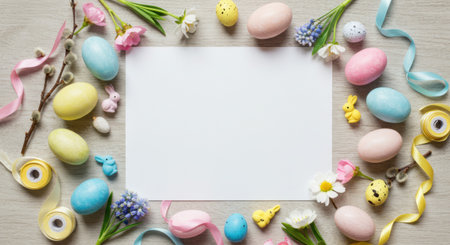 Welcoming the arrival of spring with Easter traditions, egg hunts, and joyful gatherings with family and friends. Copy Space