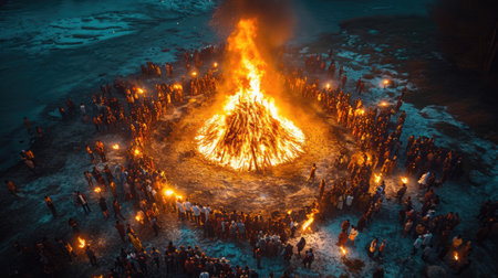 Holika Dahan or Choti Holi or the festival of bonfires, an important Hindu festival celebrated on the night before Holi. Generative AI