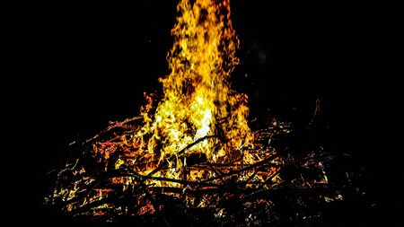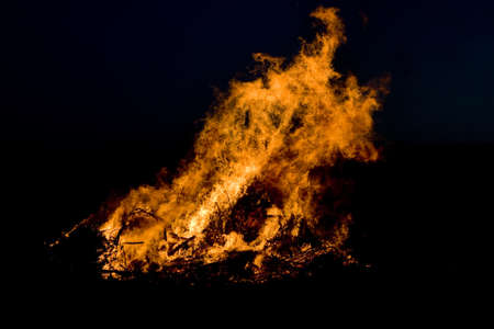 Bonfire giant in contryside. Isolated on black background. Space for text.