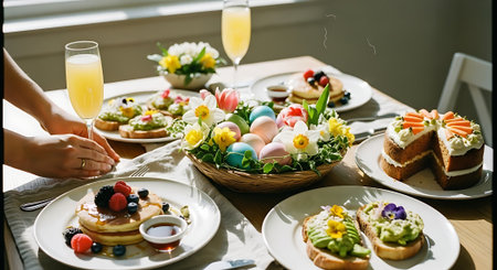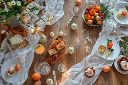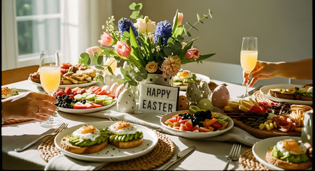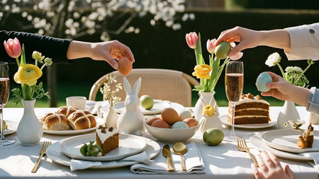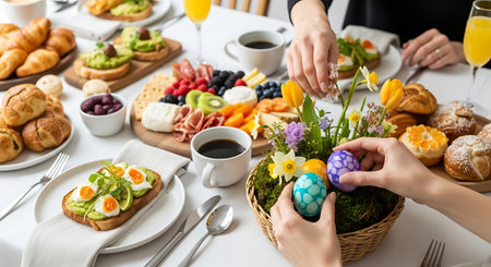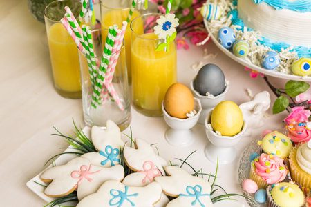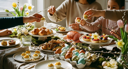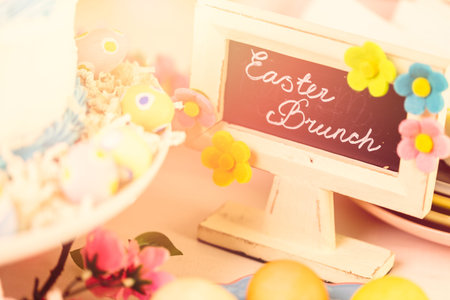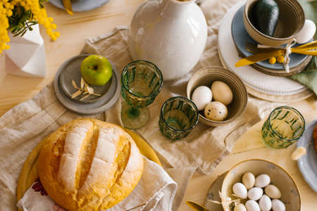 Easter table setting, Easter food background.