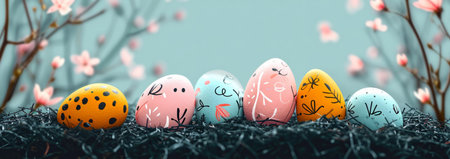 Colorful Pastel Easter Eggs Nestled Among Blooming Flowers for a Joyful Springtime Celebration