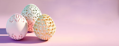 Colorful Easter Eggs Background. banner size. 3d illustration