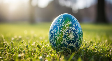 Nestled in a cozy bed of colorful straw, an intricately decorated Easter egg showcases a blend of vibrant patterns and delicate details. The egg captures the essence of springtime celebrations, evoking feelings of joy and renewal.
