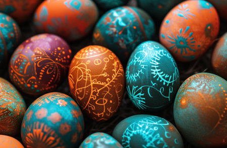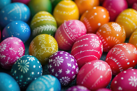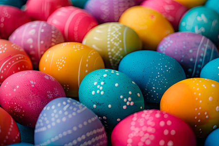 A stunning, colorful background of beautifully designed Easter eggs, capturing the spirit of Easter celebrations. Ideal for spring decor, creative projects, festive invitations, or